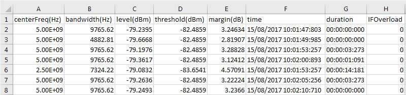 4.导航到所选目录,然后将CSV文件打开,查看干扰信号列表和详细信息
