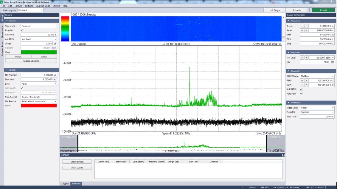 需要基线(图3)才能定义哪个频率活动是正常的,让我们获取一个基线,以便我们可以开始观察干扰事件。