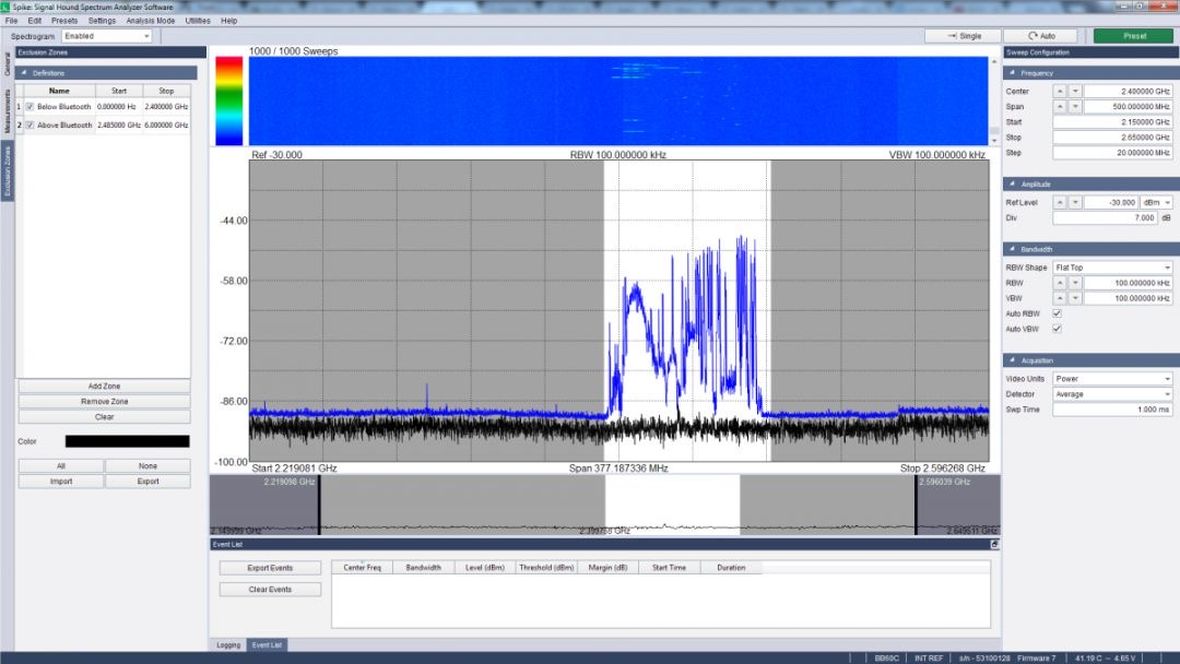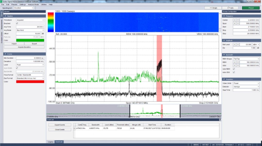 注:Signal Hound的任何频谱分析仪都可以使用“干扰搜寻”分析模式,