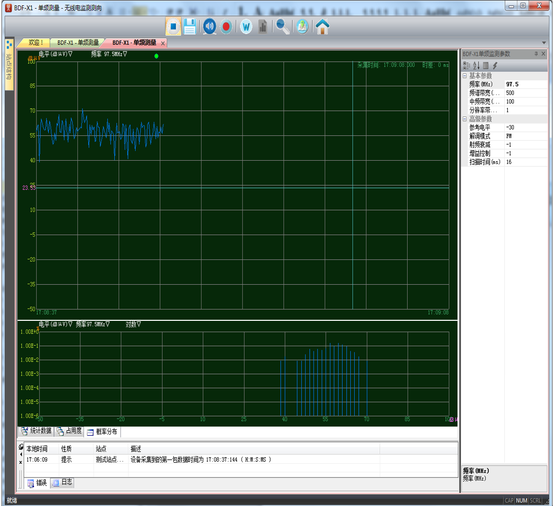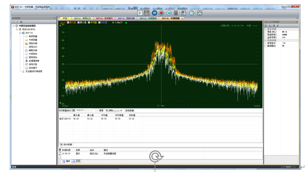 统计数据,以后可以查看和回放包括监听、录音和回放功能。在中频测量功能中,可拽手动测量带宽。