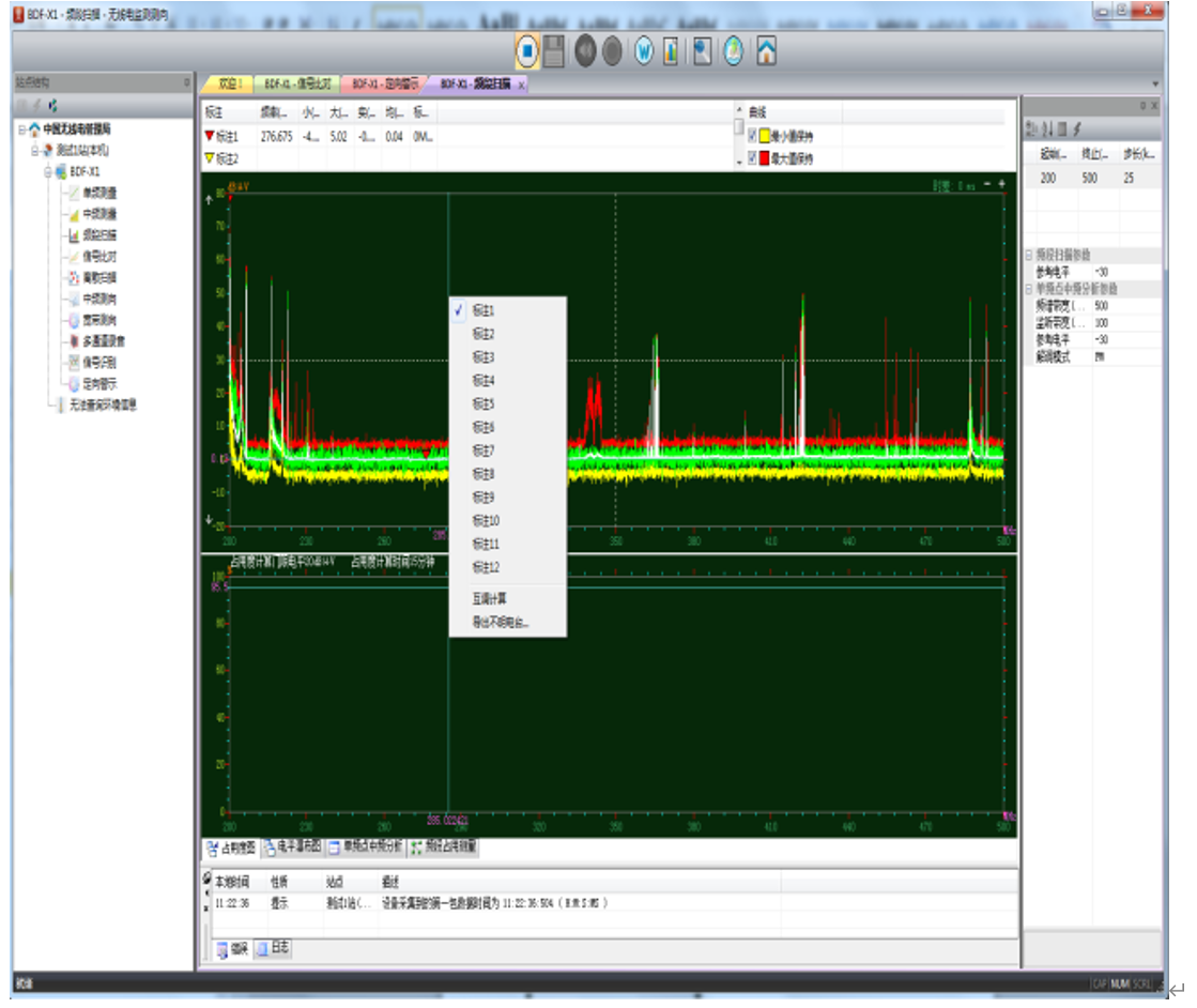 用户可以选择显示最小值、最大值、实时值、平均值,不明台、合法不明台、频率库分配、Peak门限、自动标记